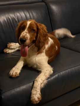 TJ’s tail never stops, it constantly wags. He is full of energy rarely with 4 feet on the ground. He is a bundle of energy with a stubborn streak mixed in with a good dose of naughty. He is a real dude who likes his creature comforts especially the lounge. The future looks exciting for this young boy.