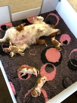Mia (Ch Laugharne Classy Lady (AI)) with her litter of 3 Boys and 3 Girls